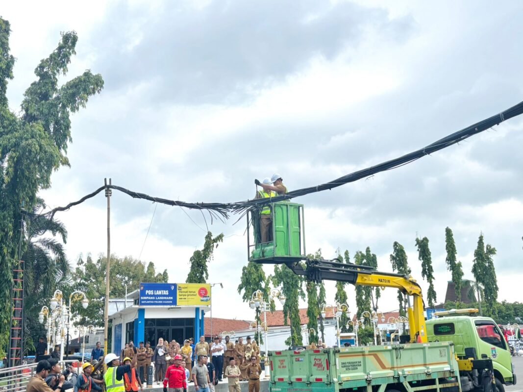 Perapihan kabel semrawut tersebut dimulai dari Jalan Protokol Kota Cilegon tepat di depan Tugu Baja Landmark Cilegon, Senin 22 Desember 2025.