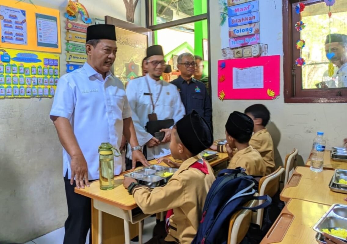 Ketua Satgas Percepatan Pelaksanaan MBG Muhammad Najib Hamas meninjau pendistribusian menu MBG yang diberikan kepada siswa Yayasan Syifa Fikriya, Kecamatan Cikande Jumat 9 Januari 2026.