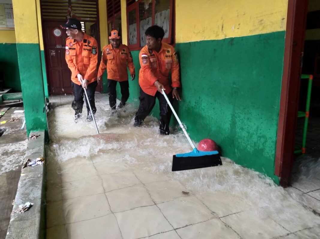 “KBM diliburkan pak kita kasihan ke anak-anak sepatunya basah, seragamnya juga, jadi wayahnya kalau lagi begini kita BDR, guru-guru memberikan tugas untuk belajar di rumah,” katanya.