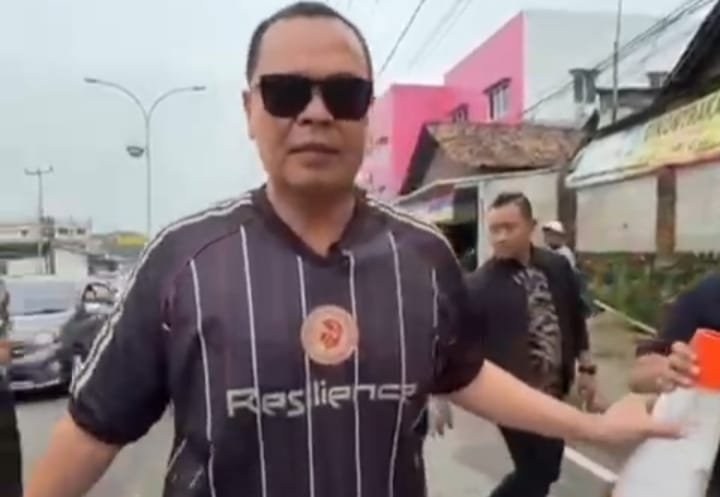 Walikota Serang Budi Rustandi menertibkan warga peminta sumbangan untuk pembangunan masjid di tengah Jalan Serang-Pandeglang, Kota Serang, Minggu 8 Februari 2026. (Instagram @abdikotaserang)