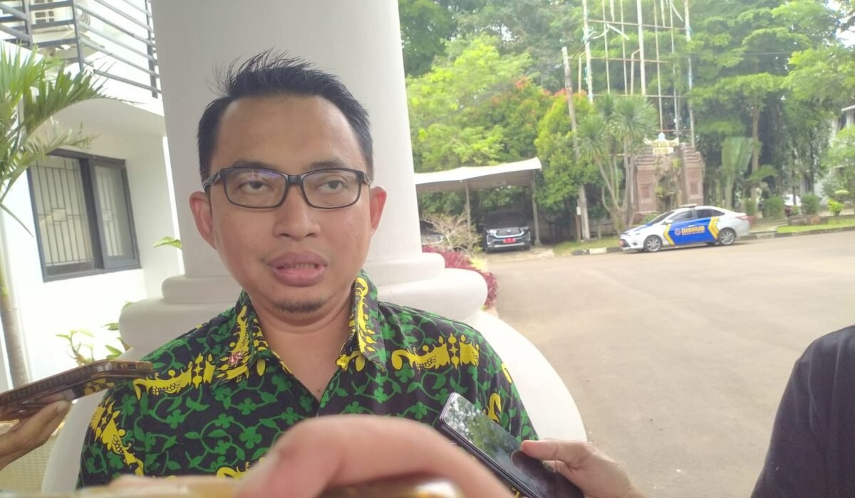 Kepala DLH Kota Serang Farach Richi diwawancarai wartawan di Setda Pemkot Serang, Jumat 27 Februari 2026. Pemkot Serang berencana belajar pengelolaan sampah ke Jepang. (Harir Baldan/Bantenraya.com)