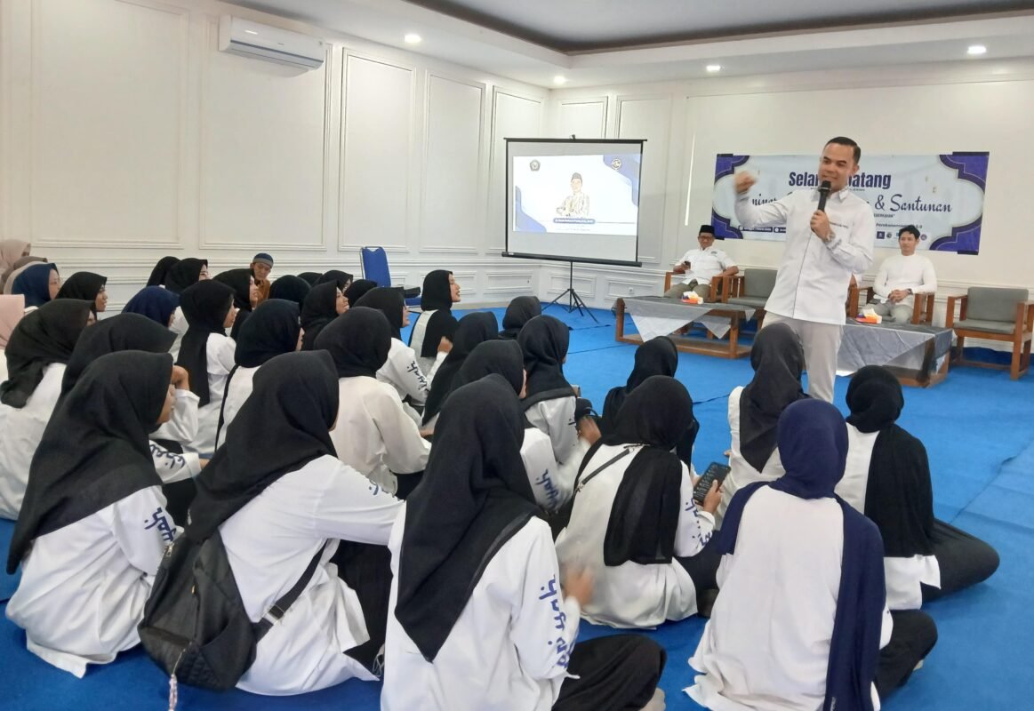 Ketua Alumni Unival Dede Rohana Putra membagikan motivasi perjalanan hidupnya dan perjuangannya hingga sukses pada momen seminar, buka bersama dan santunan yang digelar alumni Unival dan Aptrindo Banten.