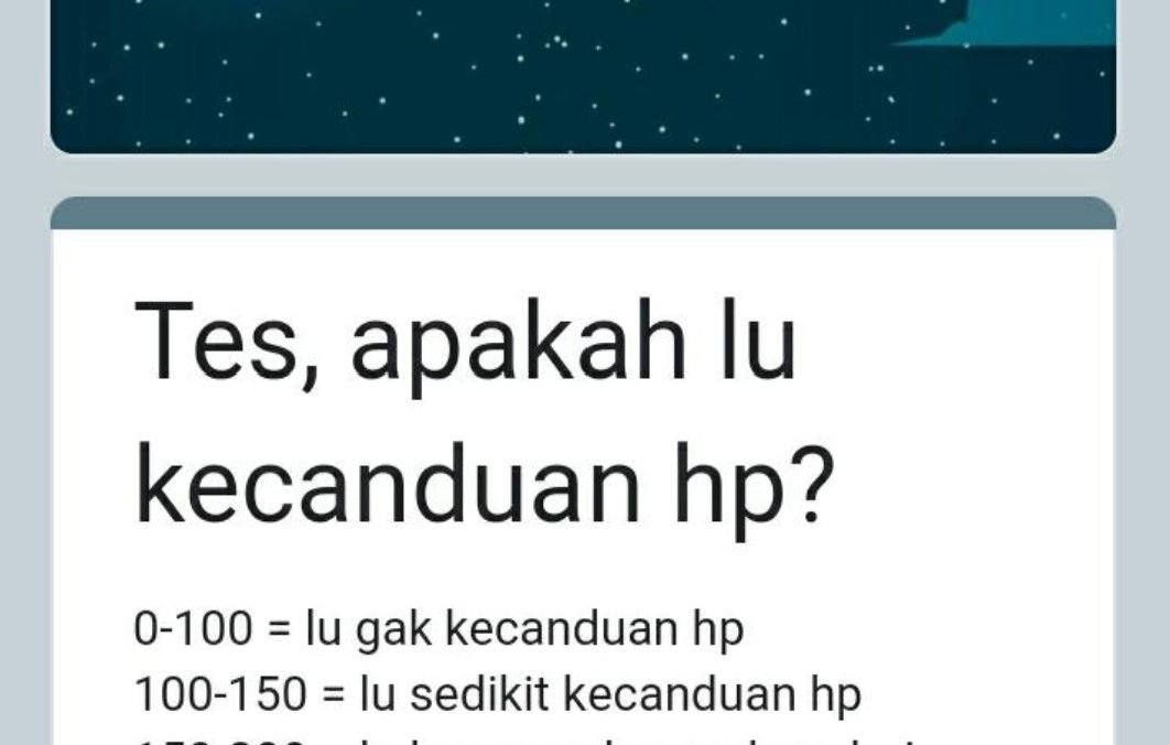 Link ujian tes kecanduan HP docs Google form dibawah ini bisa dicoba untuk mengetes apakah kamu termasuk di dalamnya.