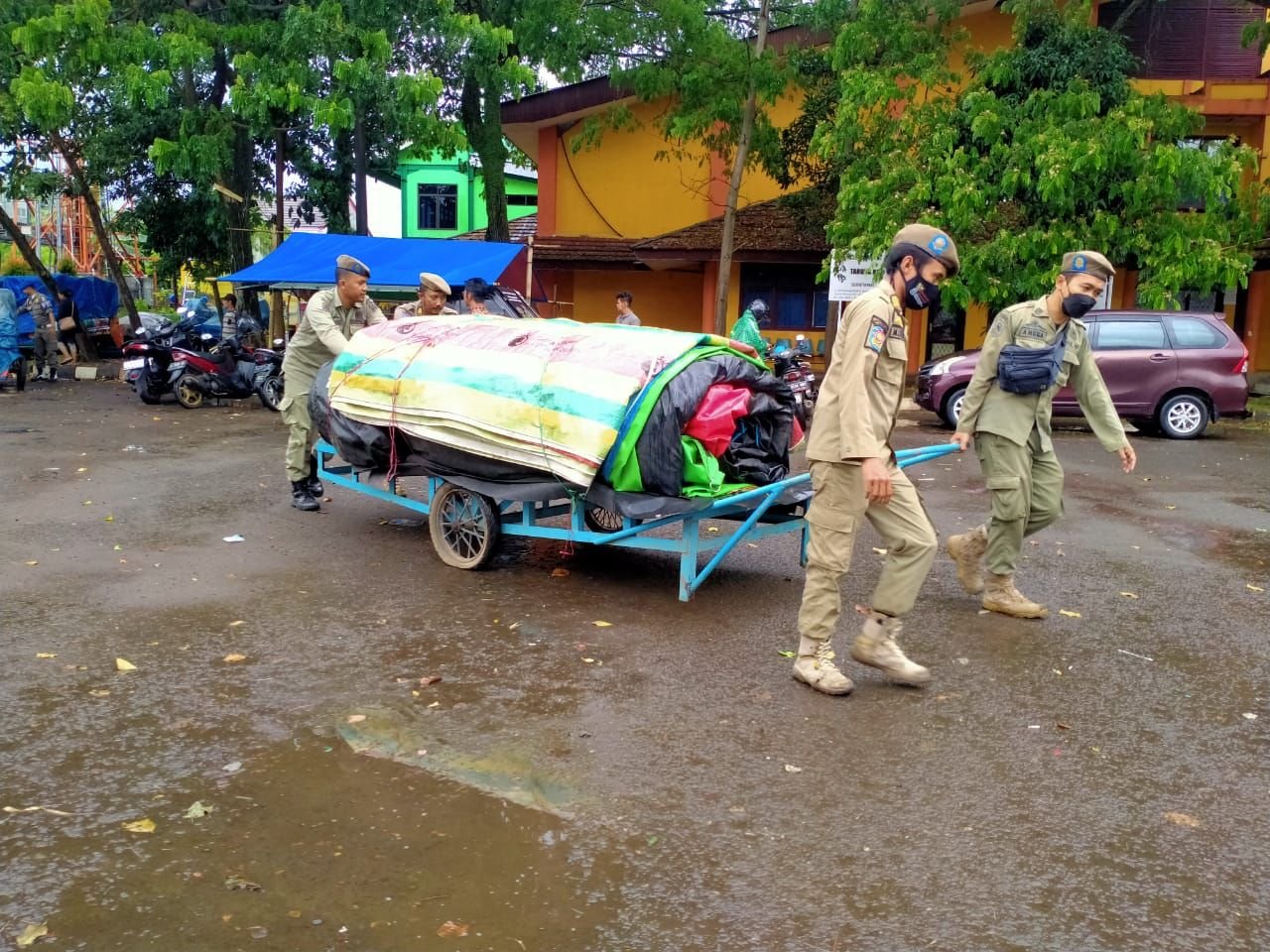 Penertiban gerobak PKL lantaran melanggar Perda Nomor 12 Tahun 2020 tentang ketentramam, ketertiban umum dan perlindungan masyarakat.