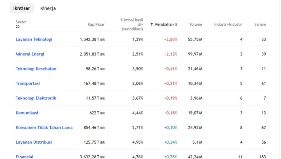 Berdasarkan data id.tradingview.com mencatat ada sebanyak 6 sector saham yang mengalami koreksi.