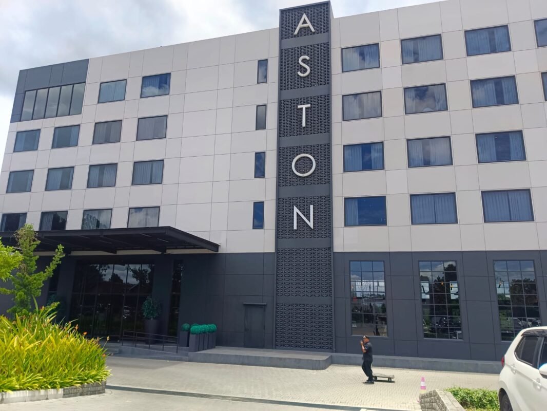 Nampak depan bangunan Aston Serang Hotel and Convention Center, di Jalan Syekh Moh. Nawawi Albantani Nomor 29, Curug, Kota Serang, Kamis 23 Oktober 2025. (Raden/Banten Raya)