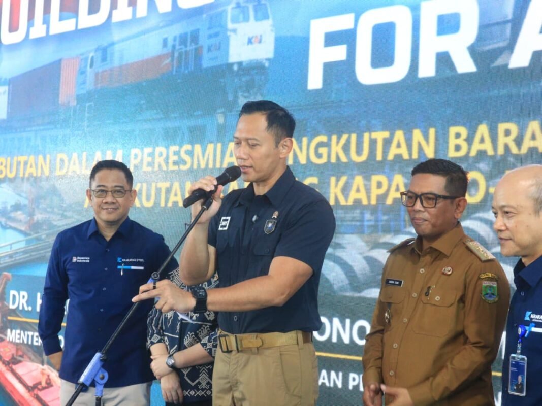 Peresmian jalur kereta api logistik dari Cilegon hingga ke Surabaya dilakukan Menteri Koordinator atau Menko Bidang Infrastruktur dan Pembangunan Kewilayahan Agus Harimurti Yudhoyono di Kawasan Industri Krakatau Steel pada Selasa, 18 November 2025.