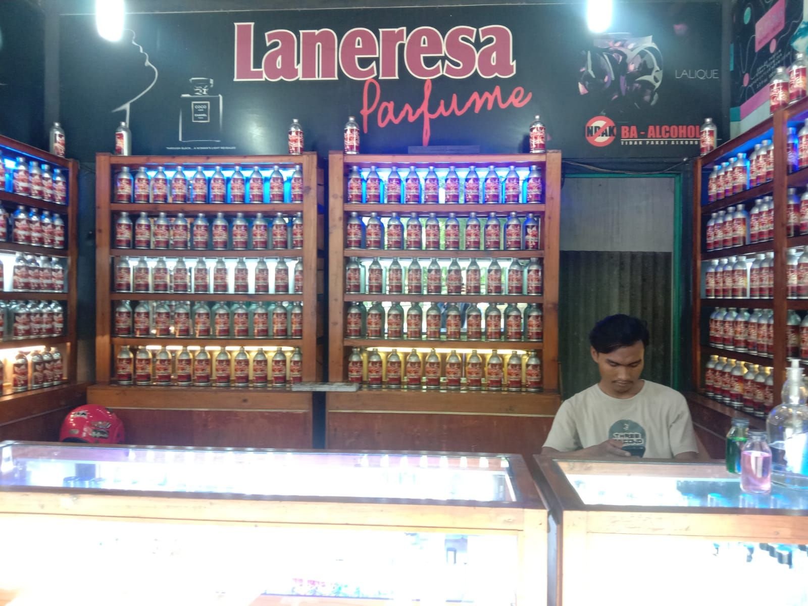 Karyawan Laneresa Parfum Eri yang sedang bersandan sambil menunggu pelanggan yang ingin membeli parfum, Senin 11 April 2022 Predy/bantenraya.com