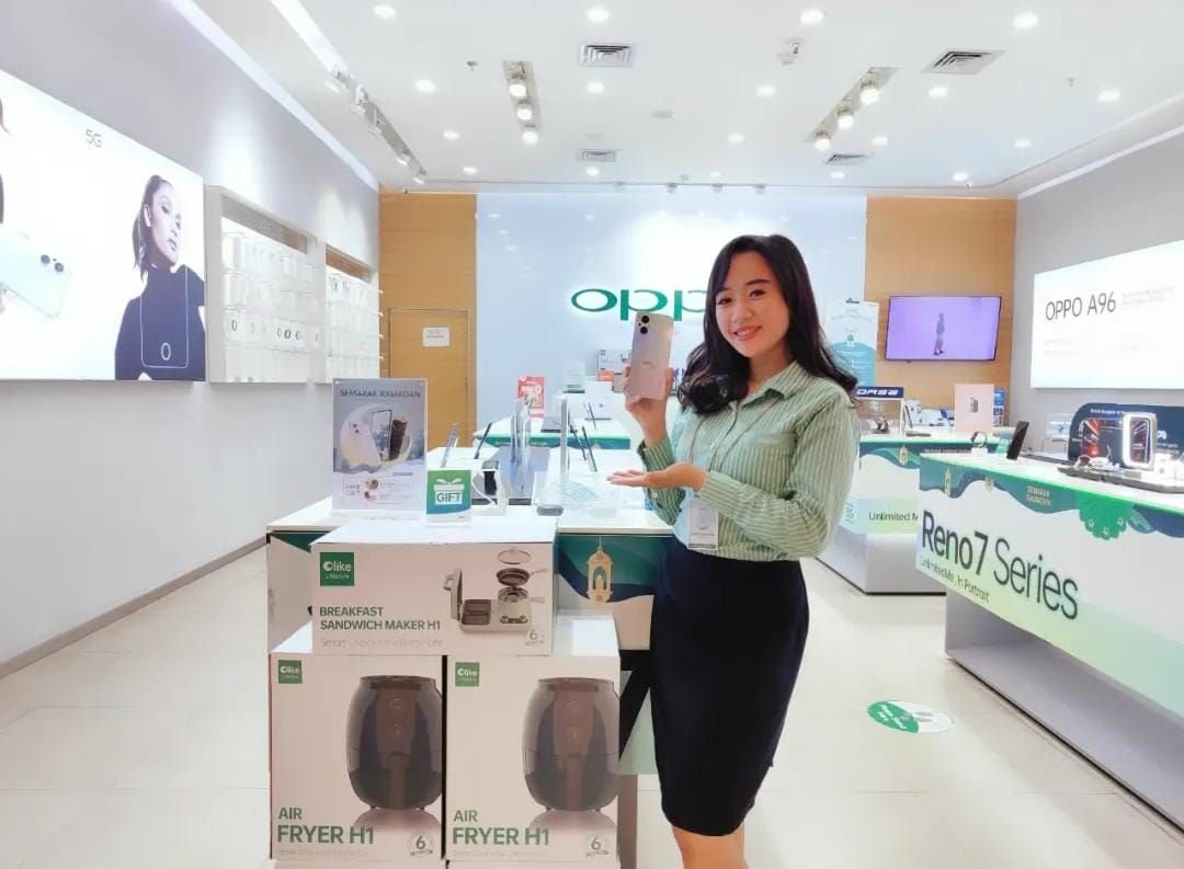 Promotor Oppo Store CCM Firda mengatakan, hadiah yang disiapkan yaitu sandwich maker, rice cooker, hingga air fryer merek Olike. Hadiah tersebut hanya berlaku bagi konsumen yang membeli smartphone pada periode 18 April – 02 Mei 2022.
