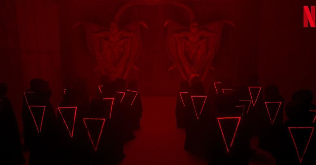 First look serial Nightmares and Daydreams memperlihatkan sebuah kelompok manusia berjubah hitam dengan lambang segitiga di pundak yang terlihat sedang menyembah dua buah patung dengan aura gelap merah.