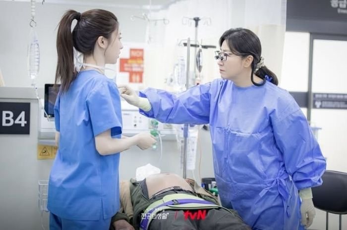Dari cuplikan yang dibagikan, memperlihatkan Go Youn Jung tengah bersama Ra Mi Ran di drakor Resident Playbook episode 1.