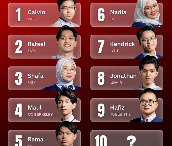 Nadia UI, Kendrick NTU, Jonathan UNAIR, Hafiz Polstat STIS berhasil lolos dan melaju ke langkah berikutnya.