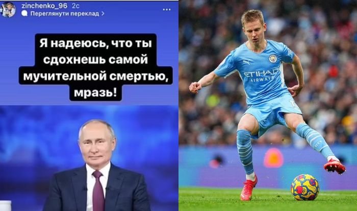 Oleksandr Zinchenko memposting foto Putin lewat Instagram Story dengan caption: ‘Saya harap Anda mati dengan penderitaan yang paling menyakitkan,’ ungkap bek Manchester City itu dilansir dari Daily Mail.