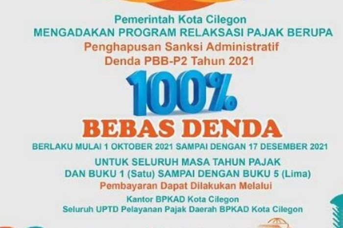 “Mulai 1 Oktober 2021 sampai dengan 17 Desember 2021. Pemerintah Kota Cilegon memberikan pembebasan denda pajak bumi dan bangunan,” tulisnya.