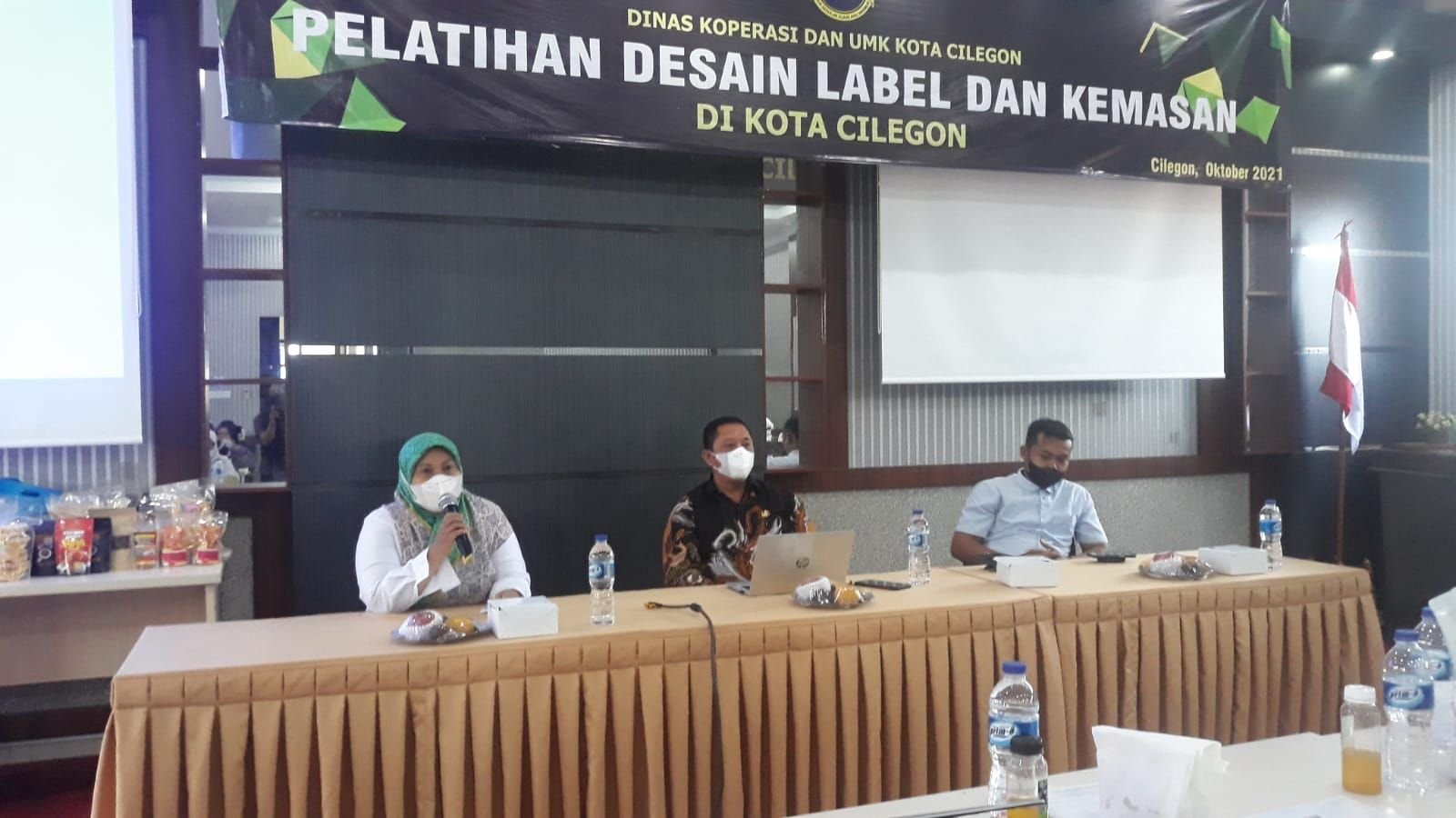 Kasi Diskopumk Kota Cilegon Teti Hartati memberikan arahan dalam sebuah pelatihan. Ia berharap pelaku UMK bisa mengurus sertifikasi halal. Uri Mashuri/Bantenraya.com