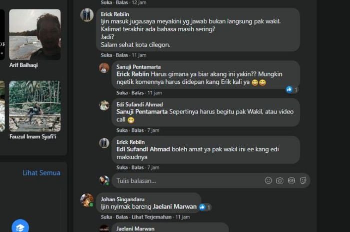 Akun Facebook Sanuji Pentamarta kembali membalas untuk ditanyakan langsung ke Diskominfo Kota Cilegon.
