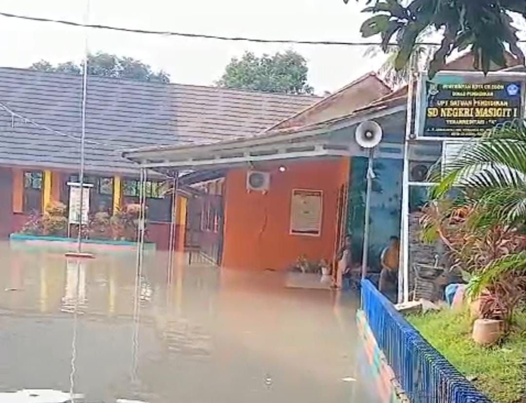 Air setinggi mata kaki masuk ke beberapa ruang kelas SDN Masigit 1.