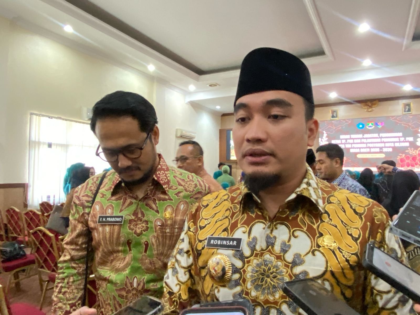 Walikota Cilegon Robinsar di Aula Setda Cilegon, Jumat, 21 Maret 2025. Tia/Bantenraya.com