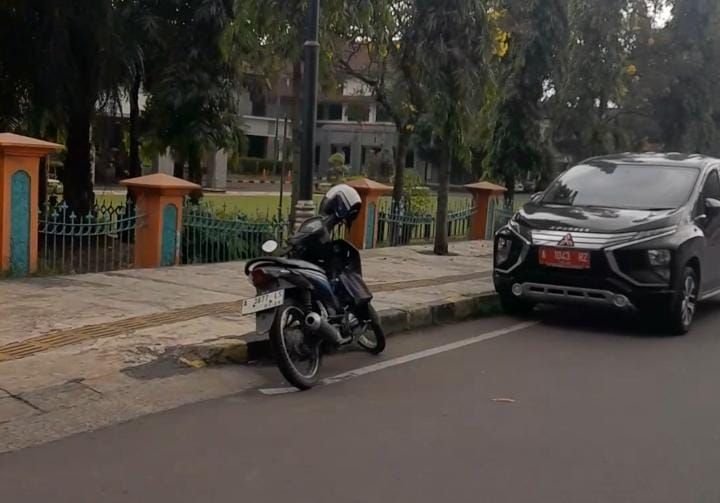 Beberapa malah memarkirkan kendaraan plat merahnya persis di bahu Jalan Jenderal Sudirman dan mengganggu pengguna jalan lainnya.
