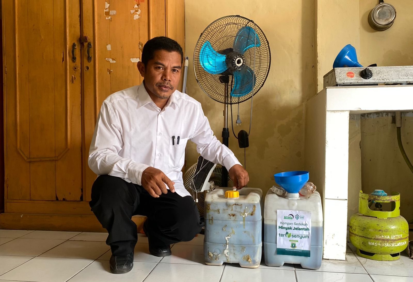 Kata dia, minyak jelantah dari pada dibuang, lebih baik dikumpulkan seperti ini bersama-sama.
