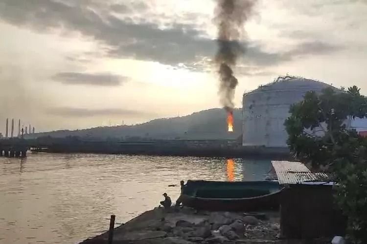 Diketahui, berdasarkan video beredar, cerobong pabrik di PertaminaTanjung Sekong mengeluarkan api. Api tersebut membuat warga sekitar panik karena semakin membesar.