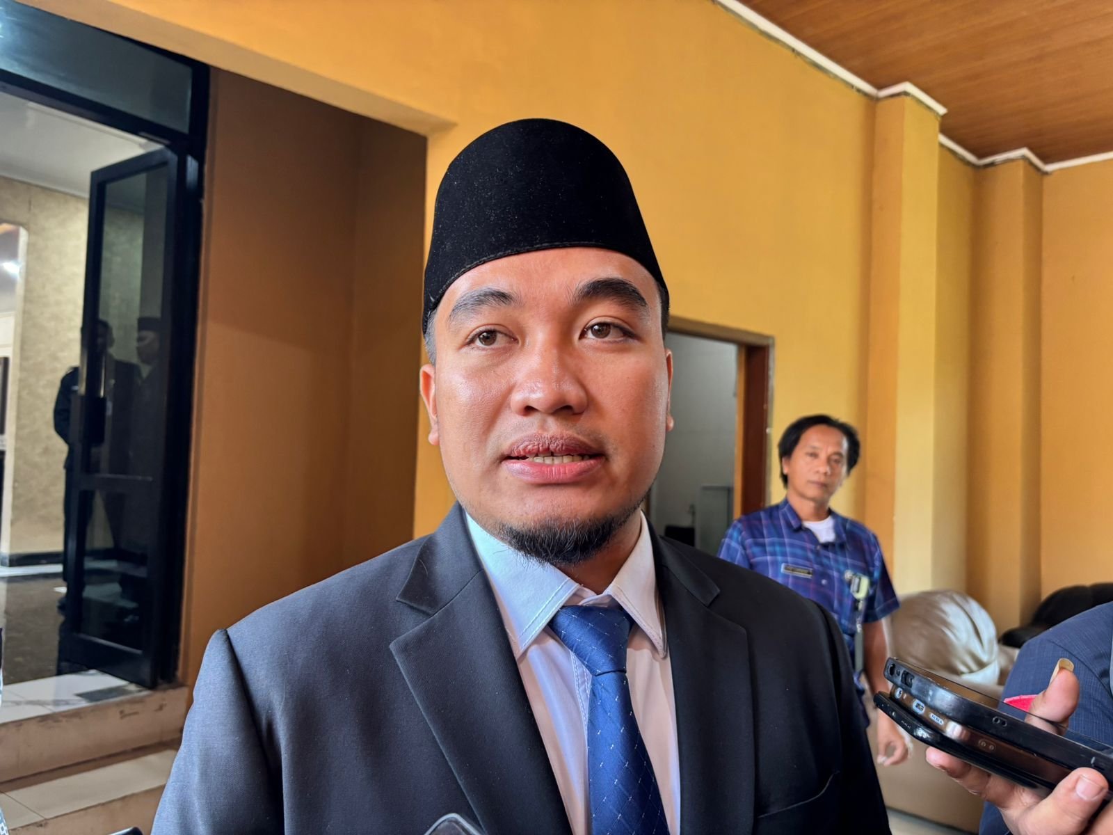 Walikota Cilegon Robinsar usai mengikuti rapat paripurna mendengarkan pidato Presiden RI menjelang HUT RI ke-80 di DPRD Cilegon, Jumat (15/8). Tia/Banten Raya