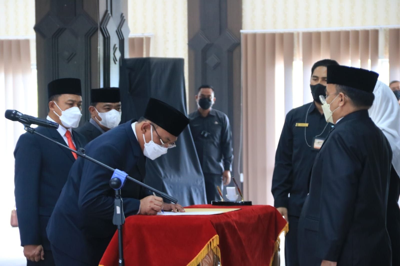 Walikota Cilegon Helldy Agustian menandatangani berita acara pelantikan. Uri/BantenRaya.com