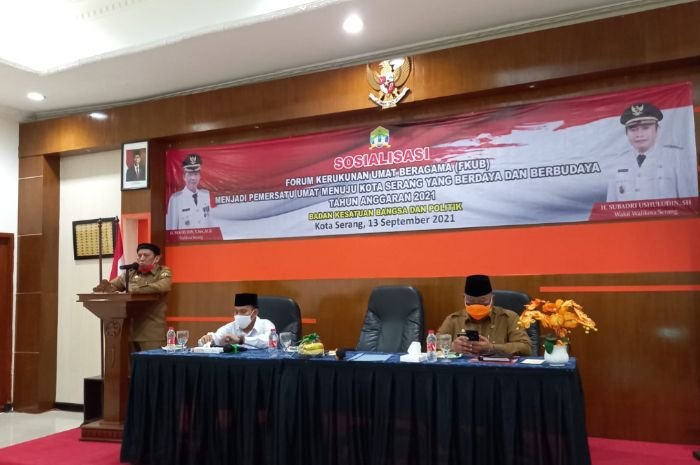 Acara Sosialisasi FKUB Menjadi Pemersatu Umat Menuju Kota Serang yang Berdaya dan Berbudaya yang digelar Badan Kesbangpol Kota Serang di Hotel Wisata Baru, Kota Serang, Senin, 13 September 2021.