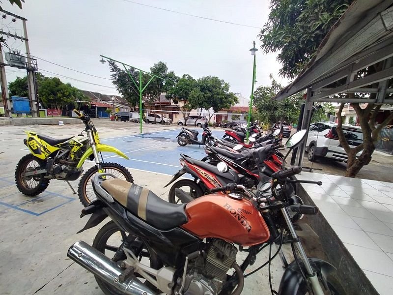 Puluhan kendaraan yang terdiri dari sepeda motor dan mobil dievakuasi di fasilitas umum (fasum) tepatnya di lapangan bulutangkis di Perumahan Citra Gading Blok J RT12 RW11, Kota Serang, Selasa 14 September 2021 harir baldan