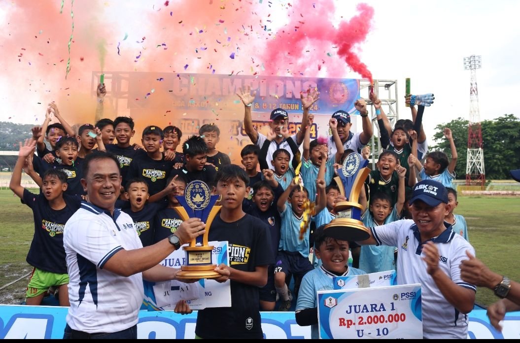 BANTEN RAYA.COM – Berakhir sudah perhelatan Liga Askot Serang usia 12 dan 10 tahun. Juara untuk usia 12 tahun diraih oleh Bantara International Academy Soccer (BISA) yang memimpin klasemen dengan raihan 39 poin. Sementara itu juara usia 10 tahun diraih Sinagndaru A engan raihan 19 poin.