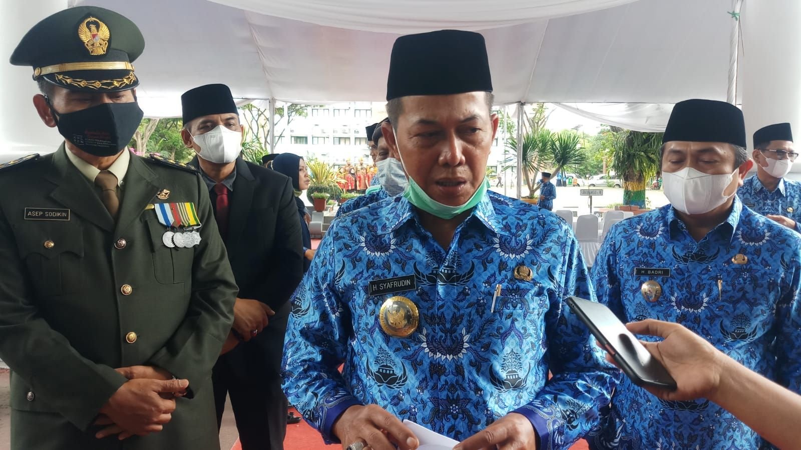 Walikota Serang Syafrudin saat diwawancarai wartawan usai Peringatan Hari Pahlawan, Selasa 10 November 2021 harir/bantenraya