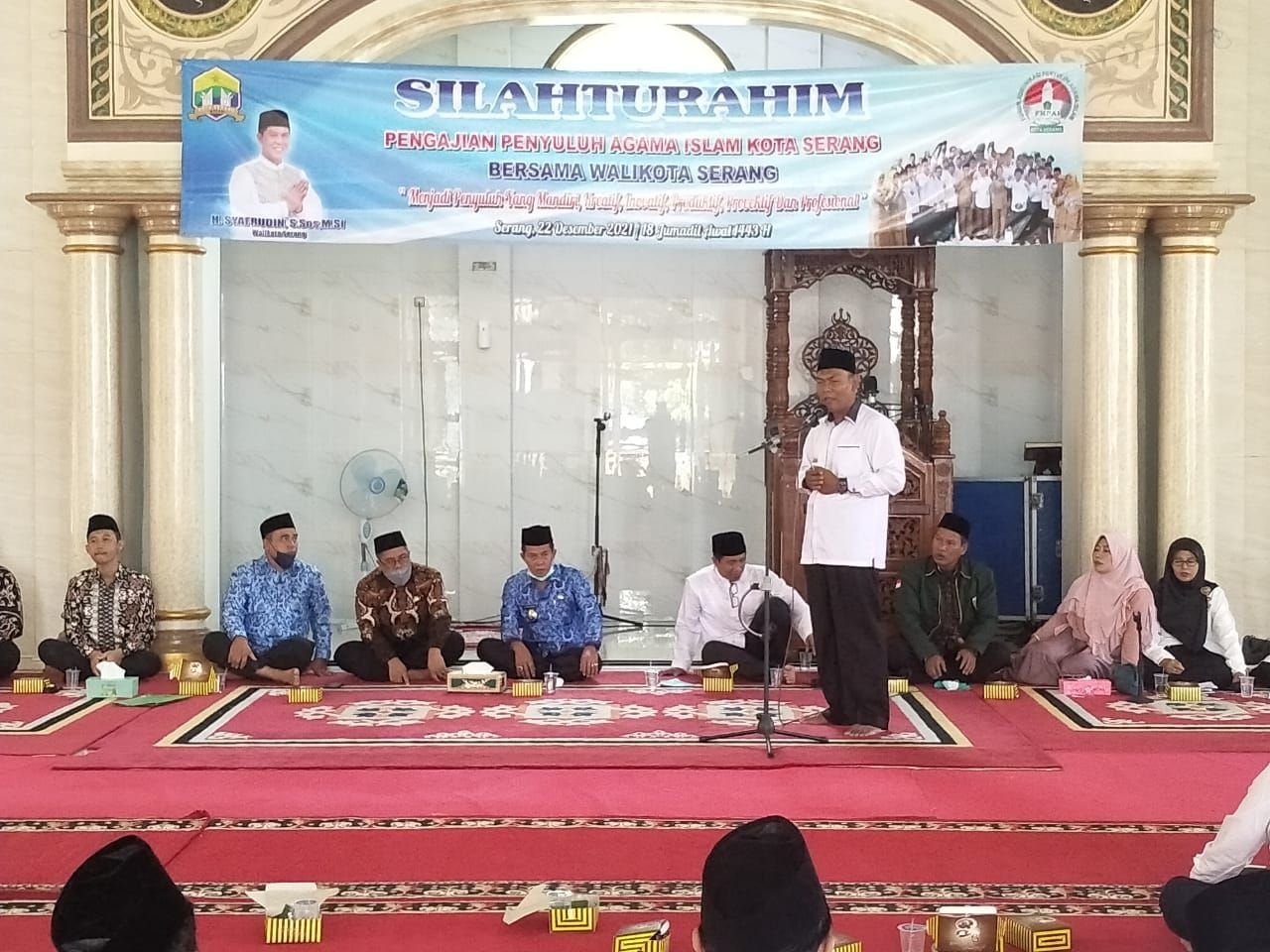 Hal ini diungkapkan Ketua Forum Komunikasi Penyuluh Agama Islam atau FKPAI Kota Serang Khoirul Sholihin dalam acara pengajian Penyuluh Agama Islam Kota Serang sekaligus pengukuhan FPKAI Kota Serang priode 2021-2024 di Masjid Al Madani, Puspemkot Serang, Kota Serang, Rabu 22 Desember 2021.