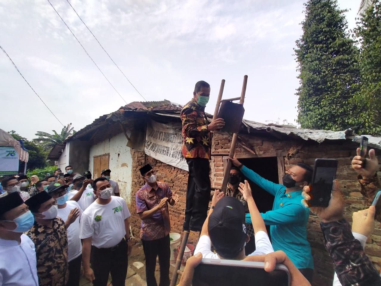 BANTEN RAYA.COM – Kementerian Agama (Kemenag) Kota Serang membedah rumah almarhum mantan pegawai honorer Kemenag Kota Serang pada Hari Amal Bakti (HAB) ke-76 di Lingkungan Jemaka, Kelurahan Cilaku, Kecamatan Curug, Kota Serang, Kamis 30 Desember 2021.