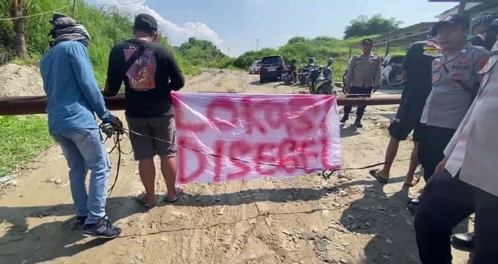 Sejumlah warga menyegel tambang pasir di Kampung Pasir Rokok, Desa Margajaya, Kecamatan Cimarga, Kabupaten Lebak, belum lama ini. Kini tambang pasir di sana diadukan anggota DPRD ke Wakil Bupati Lebak Amir Hamzah. Aldi Setiawan/Bantenraya.com