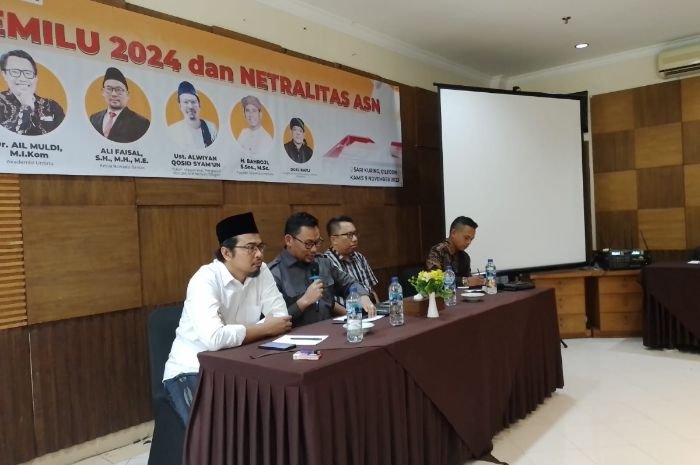 Para pemateri di diskusi Pemilu 2024 dan Netralitas ASN di Sari Kuring, Cilegon, Kamis 9 November 2023. Hamdi/Bantenraya.com
