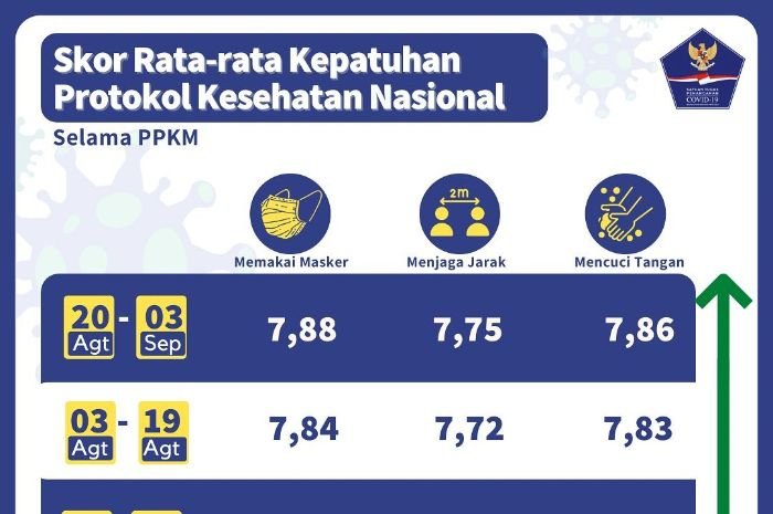 Sementara itu, Satgas Perubahan Perilaku menyatakan, berdasarkan rata-rata skor kepatuhan protokol kesehatan nasional, kepatuhan masyarakat semakin meningkat dalam hal memakai masker, menjaga jarak dan menghindari kerumunan, serta mencuci tangan pakai sabun selama periode pelaksanaan PPKM.