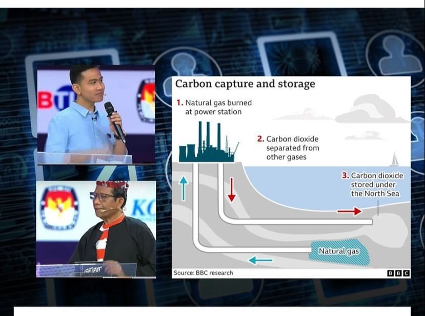 Di mana, Gibran Rakabuming dan Mahfud MD saling ‘serang’ soal Carbon Capture and Storage.