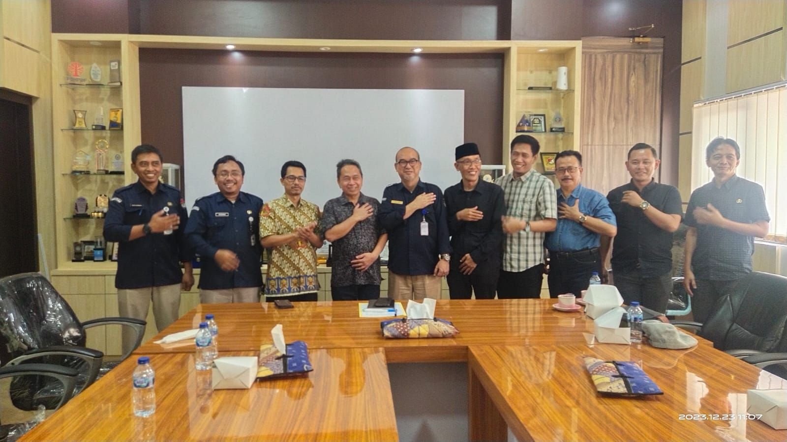 Pj Walikota Serang Yedi Rahmat didampingi jajarannya foto bersama KPU Kota Serang. Program BPJS kesehatan untuk badan ad hoc minta segera direalisasikan. Dokumentasi Pemkot Serang
