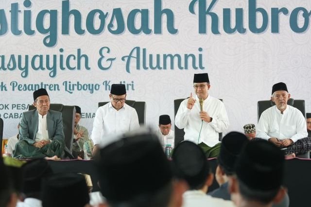 “Belum lagi kami dalam perjalanan ke sini (Lirboyo) ketemu dengan begitu banyak rakyat. Kebanyakan menceritakan tentang pedihnya ketimpangan ekonomi,” kata Anies Baswedan.
