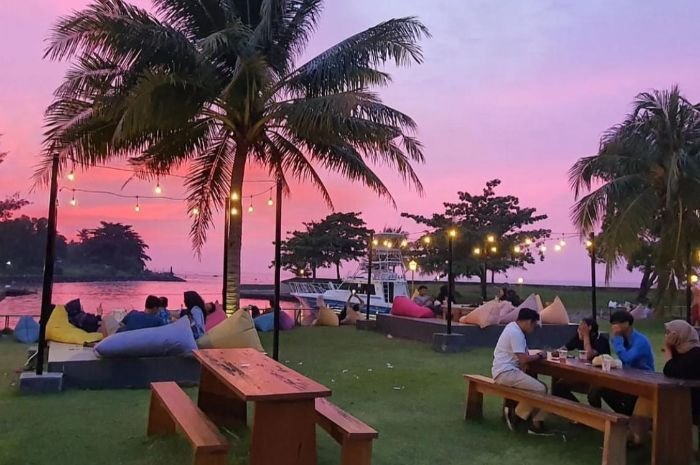 Kafe ini menawarkan pengalaman ngopi yang eksklusif dengan pemandangan pantai serta kapal pesiar mini.