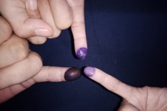 Pada awalnya mungkin jari ungu akibat tinta di TPS ini akan terlihat keren sebagai penanda telah menyalurkan haknya.