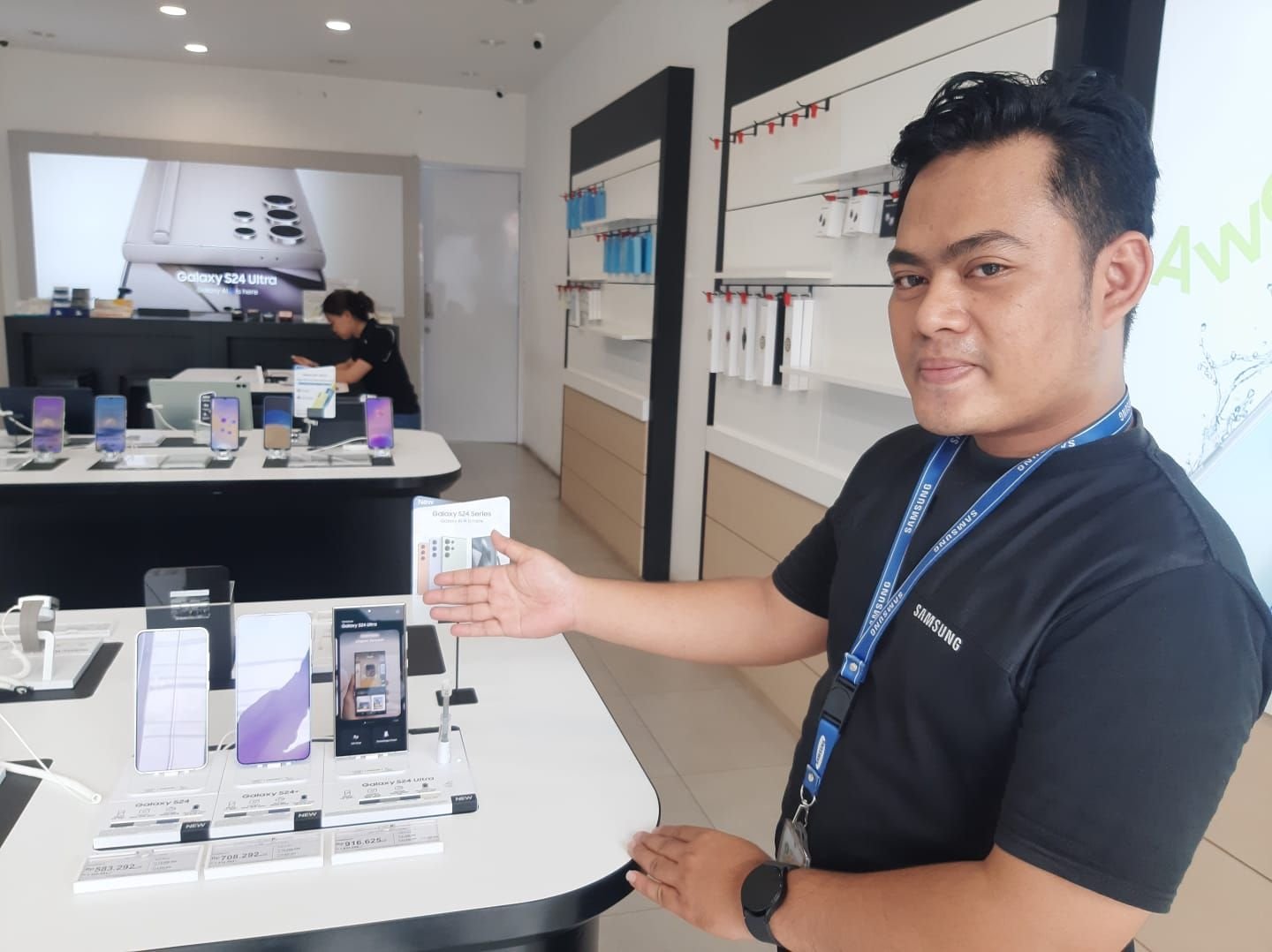 Promotor Samsung Cilegon menunjukkan Gudget Samsung S24 Series Ari/ Banten Raya