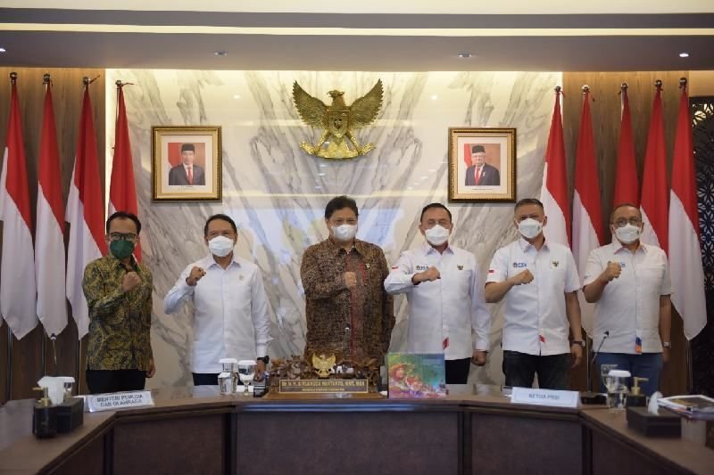 Untuk mendiskusikan penyelenggaraan Liga 2 di beberapa kota di luar Jawa-Bali yakni di Pekanbaru dan Palembang (PPKM Level 2), kemudian Balikpapan dan Palangkaraya (PPKM Level 3), selain juga dilaksanakan di beberapa kota Pulau Jawa, Menteri Pemuda dan Olahraga (Menpora) Zainudin Amali bersama Ketua PSSI menemui Menteri Koordinator Bidang Perekonomian Airlangga Hartarto, Selasa (28/09).