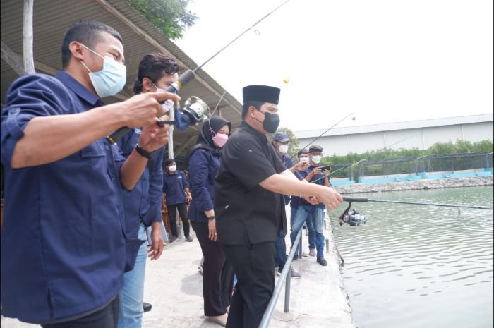 Dalam kesempatan itu, Erick Thohir juga memancing ikan bersama dengan para wartawan di sebuah kolam pemancingan di Kecamatan Kasemen, Kota Serang sebelum menggelar diskusi.