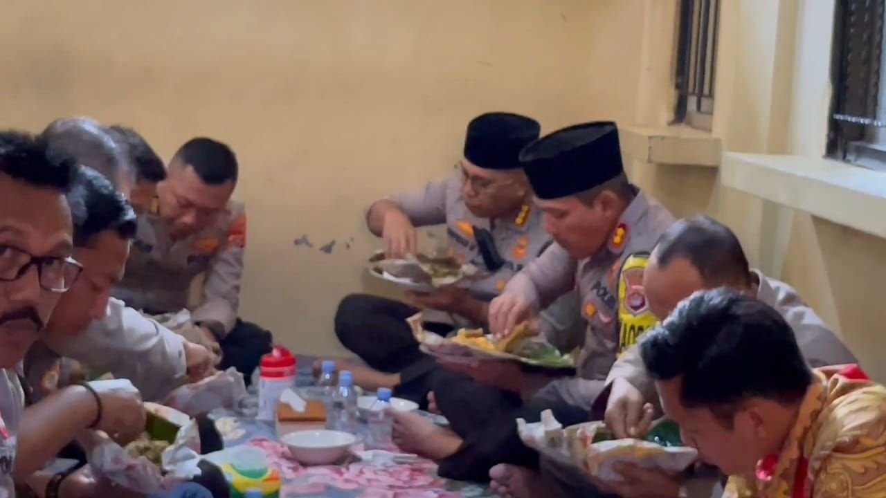 BANTENRAYA.COM – Kapolresta Serang Kota Kombes Pol Sofwan Hermanto makan siang bersama di Sel Rutan Polresta Serang Kota, bersama puluhan pelaku kejahatan, Jumat 19 Juli 2024.