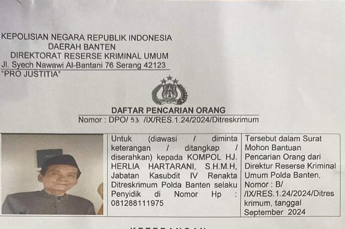 Menurut Didik, penyidik Subdit Reknata saat ini tengah memburu pelaku. Bahkan pihaknya telah menetapkan NR masuk dalam daftar pencarian orang (DPO) Polda Banten sesuai dengan nomor:DPO/53/IX/Res.1.24/2024/Ditreskrimum.