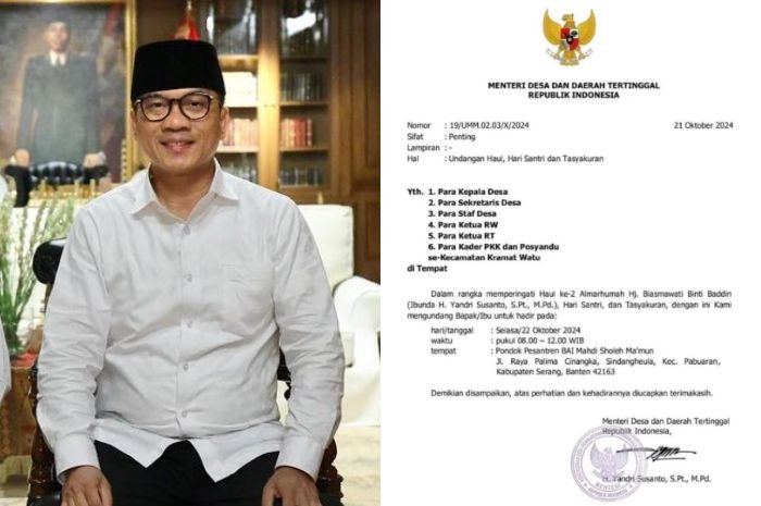 Surat tersebut mengundang beberapa pihak untuk datang ke Haul ke-2 Almarhumah Hj. Biasmawati Binti Baddin (Ibunda Yandri Susanto), Hari Santri, dan Tasyakuran.