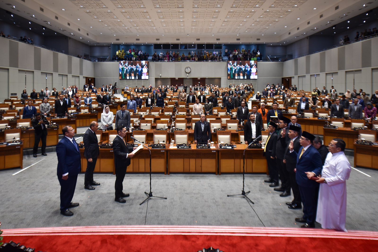 “Anggota pengganti antar waktu sebelum memangku jabatannya mengucapkan sumpah janji secara bersama-sama yang dipandu oleh Pimpinan DPR RI dalam Rapat Paripurna DPR RI,” kata Puan saat Rapat Paripurna di Kompleks Parlemen, Jakarta, Selasa.
