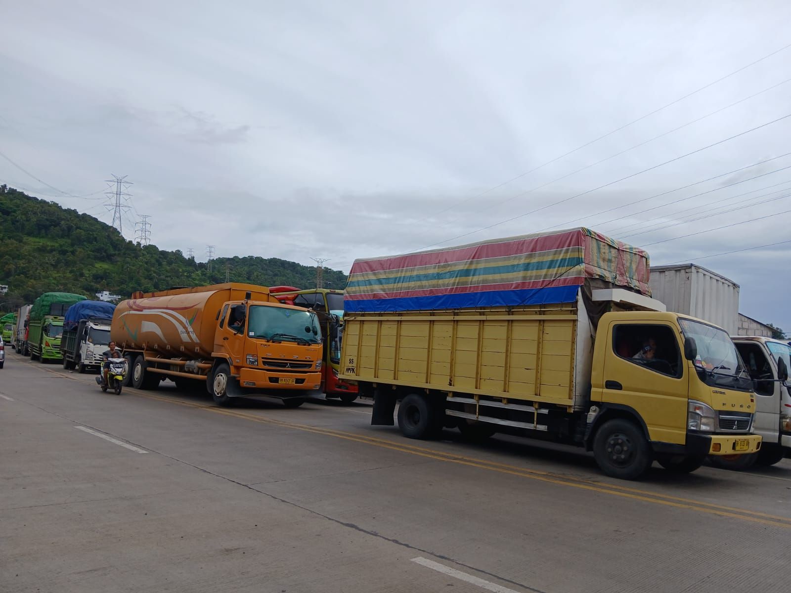 Aksi truk melakukan blokir pelabuhan dan kawasan industri yang digawangi oleh Aptrindo Banten buntut dari kebijakan pemerintah yang melarang operasional truk selama 16 hari pada masa libur Lebaran 2025.