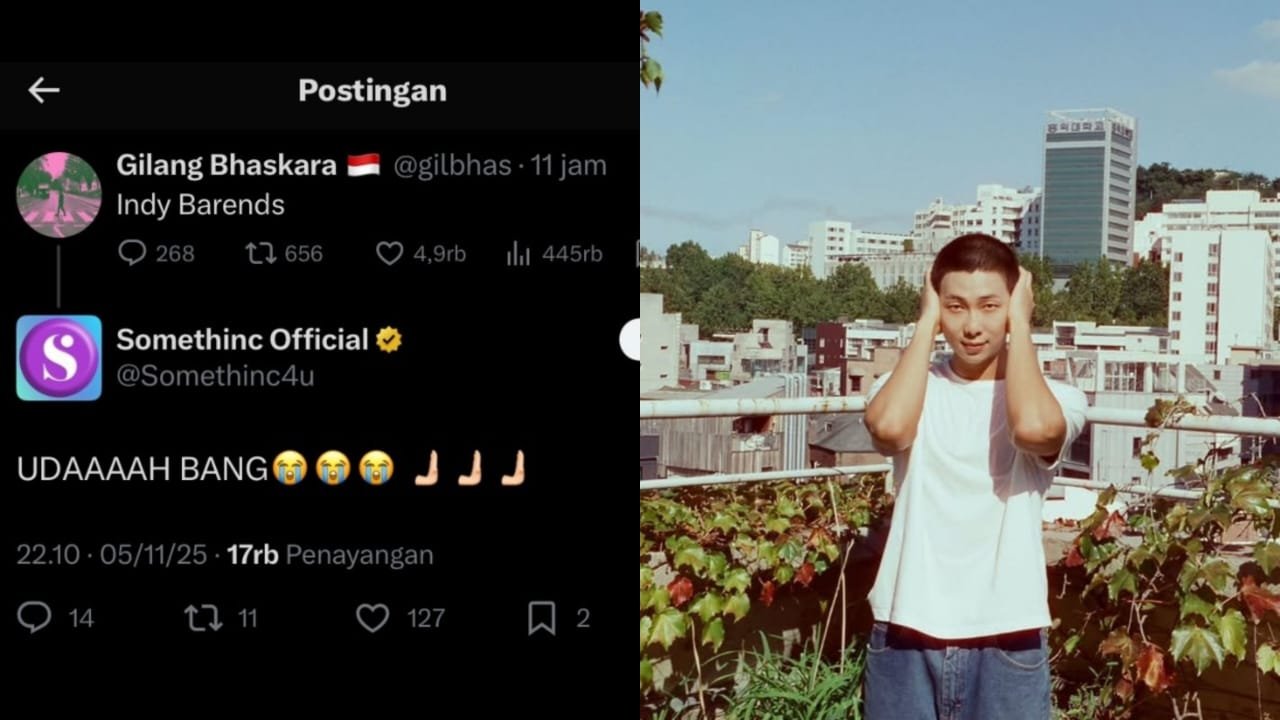 Meski cuitan Gilang tersebut tanpa konteks apalagi mengarah dimiripinya Namjoon dengan Indy, brand Somethinc turut berkomentar.